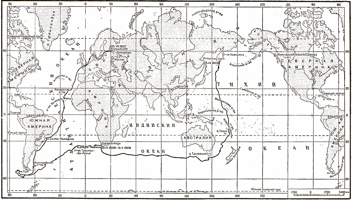 Кругосветные плавания русских военных моряков начались в очень тревожное время наполеоновских войн и с 1808 по 1813 год ни один корабль не выходил из Кронштадта в Русскую Америку.