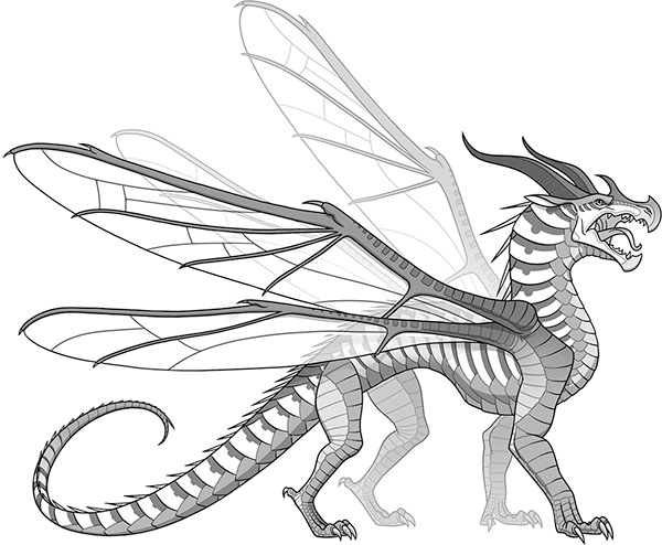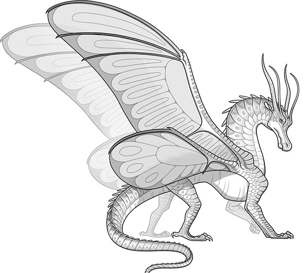 Две пары крыльев, изящных и переливчатых, как у бабочки. Появляются у бескрылых драконят в шестилетнем возрасте вместе со способностью выделять шёлк. Чешуя любого цвета, за исключением чёрного.