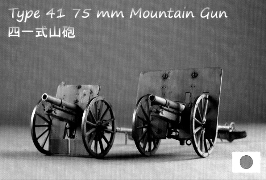 Артиллерийская часть отряда располагала двумя горными 3-дюймовыми (75-мм) пушками тип 41 (образца 1908 года) и 70-мм горной гаубицей образца 1932 года (бомбометом) на конной тяге. [117]