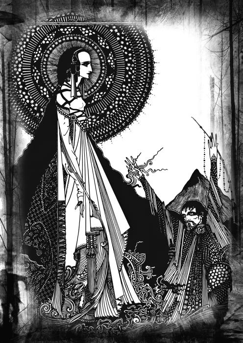 По-видимому, она готова была лишиться чувств, а поблизости не было слуг. Вспомнив, где стоит графин с легким вином, которое ей прописали врачи, я бросился за ним через комнату. Но когда я вступил в полосу света, падавшего от кадильницы, два поразительных обстоятельства привлекли внимание мое. Я почувствовал, что кто-то невидимый, но осязаемый прошел мимо меня, и заметил на освещенном пространстве золототканого ковра тень, легкую, неясную тень ангела, как бы тень тени. Но, находясь под влиянием неумеренной дозы опиума, я не обратил внимания на эти явления и ни слова не сказал о них Ровене. Отыскав вино, я вернулся к постели и, наполнив бокал, поднес его к губам изнемогавшей леди. Впрочем, она уже оправилась и приняла от меня бокал, а я опустился на оттоманку, не спуская глаз с лица ее. В эту минуту услышал я легкие шаги по ковру близ кровати, и мгновение спустя, когда Ровена подносила бокал к губам, я увидел или мне померещилось, что в него упали, точно из невидимого источника в воздухе, три или четыре крупные капли сверкающей рубиново-красной жидкости. Я видел это, Ровена не видела. Она не задумываясь выпила вино, а я не стал говорить ей об этом странном явлении, решив, что оно было простым бредом моего расстроенного воображения, возбужденного ужасом больной, опиумом и поздним часом.Но я не мог не заметить, что вслед за падением рубиновых капель состояние жены моей стало быстро ухудшаться, так что на третью ночь слуги уже приготовляли к погребению тело ее, а на четвертую я сидел перед окутанным в саван трупом в той же сказочной комнате, которая принимала новобрачную. Дикие, рожденные опиумом видения, подобно теням, реяли в глазах моих. Беспокойным взором смотрел я на саркофаги по углам, на изменчивые фигуры завес, на разноцветные огни кадильницы над головой моей. Потом, вспомнив о странных явлениях той ночи, опустил глаза на освещенное пространство, где заметил легкие очертания тени. Теперь ее не было, и, вздохнув с облегчением, я устремил глаза на бледную окоченелую фигуру, лежавшую на постели. Тут нахлынули на меня воспоминания о Лигейе, и в сердце моем пробудилась с неудержимою силой бурного потока несказанная скорбь, терзавшая меня, когда я увидел ее в саване. Часы летели, а я, с сердцем, полным горьких воспоминаний о бесконечно любимой, я все сидел, не сводя глаз с тела Ровены.