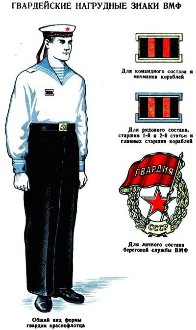 3. Гвардейцы флота носят гвардейские нагрудные знаки и гвардейские ленты на фуражках (рядовой состав).