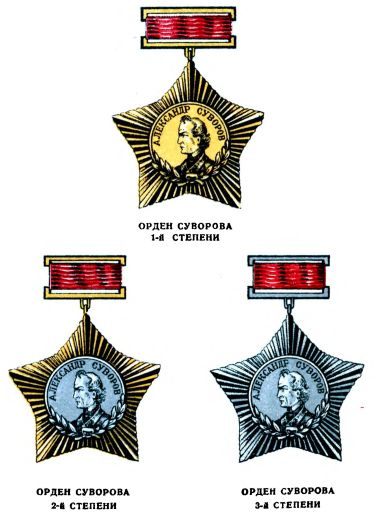 Орденом СУВОРОВА, имеющим три степени, награждаются командиры за выдающиеся успехи в деле управления войсками, отличную организацию боевых операций и проявленные при этом решительность и настойчивость, в результате чего была достигнута победа.
