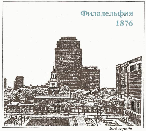 Первая Всемирная выставка на американском материке состоялась в Филадельфии и посвящалась столетнему юбилею Соединенных Штатов. Главное место на ней занимал машинный отдел, и наиболее интересными предметами среди публики считались пишущая и швейная машины. Американский изобретатель А. Г. Белл показал здесь первый телефонный аппарат, его соотечественник инженер Д. Корлис демонстрировал гигантскую по мощности паровую машину (2500 л. с).