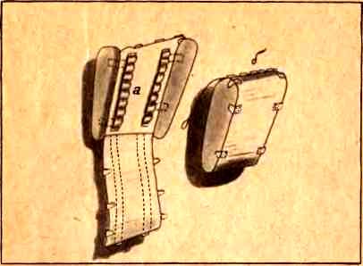 Этот ранец-парашют я проектировал в двух вариантах. Один конверт был пришит на спине летного комбинезона; под клапанами конверта укладывался парашют. Второй — отдельный ранец с четырьмя клапанами. Клапаны обоих ранцев застегивались с помощью тросовой шпильки.