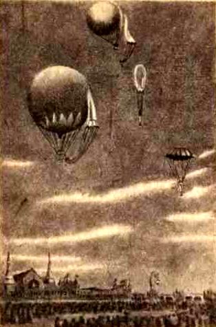 Прыжки акробата-парашютиста «профессора» Болдуина. (С современного фотоснимка).