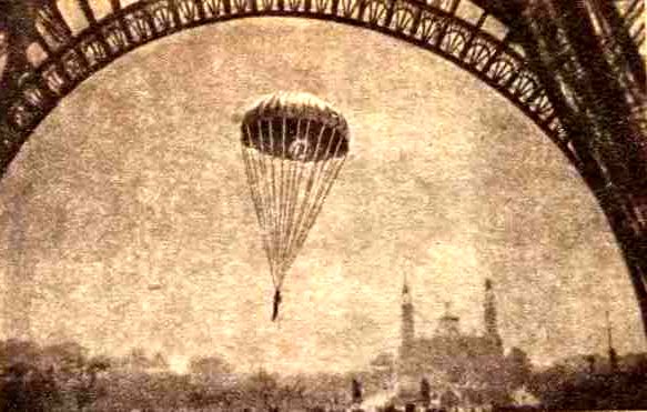 Испытание парашюта Эрвье с Эйфелевой башня. (С современной фотографии).