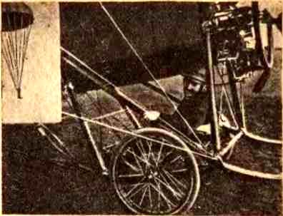 Другой французский изобретатель, Орс, в 1910 году сам испытывал свои парашюты. Он садился на сиденье, устроенное на оси аэроплана, между колесами. В таком положении парашютиста поднимали на высоту, и он прыгал.