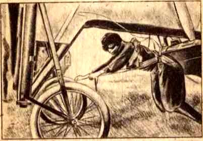 Пегу стал спускаться с парашютом. Но вот он взглянул вверх и видит, его машина, у которой он не выключил мотор, предоставленная самой себе, поднялась вверх и сделала замкнутый круг, то есть то, что потом назвали «мертвой петлей». Вслед за этим аэроплан стал сам проделывать разные фигуры в воздухе и, спустившись к земле, сел довольно удачно, с очень небольшими повреждениями. Пегу, сообразив, в чем дело, решил сам сделать «мертвую петлю». Объявив о своем намерении,