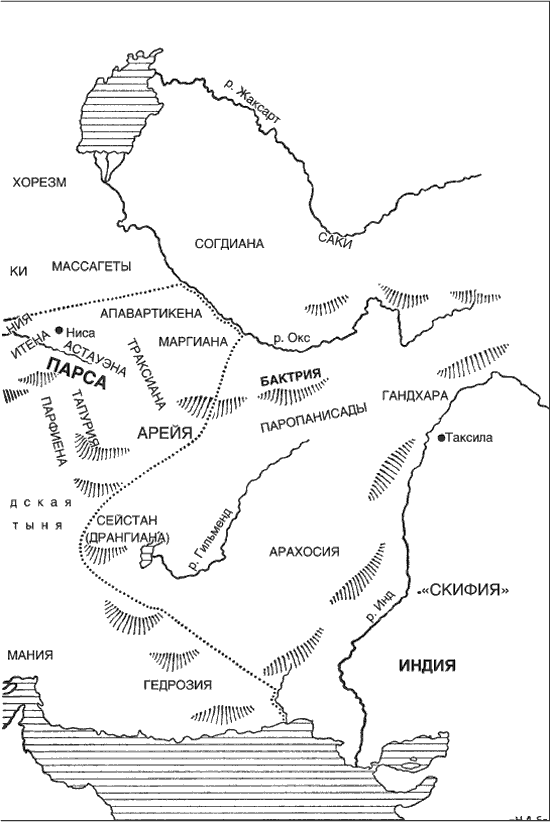 Эти условия оставались постоянными факторами истории Ирана с момента вторжения иранских конных отрядов на территорию Большого Ирана (это удобный термин для обозначения культурного района Ирана в древности). Само слово «Иран» говорит об арийских захватчиках этих земель. Персия была древнегреческим эквивалентом названия ахеменидской провинции Парса – современный Фарс. Благодаря тому, что название Персия было расширено, включив в себя весь Иран, удобнее отличать провинцию, именуя ее более поздним названием Персида. Парфия также употреблялась древнегреческими и ранними эллинскими авторами в отношении ахеменидской сатрапии Парфиены. Когда иранские кочевники парны, которые нас интересуют, попали в провинцию Парфия, греческие и римские авторы стали считать их парфянами. После того как они покорили весь Большой Иран, значение термина расширилось вместе с их империей, так что необходимо проводить различие между сатрапией и царством, которое носило то же название.