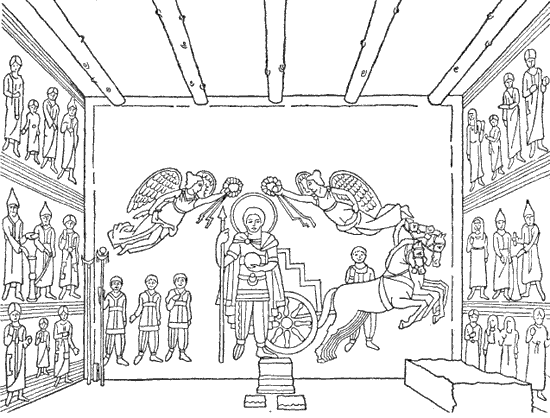 Рис. 22. Фрески, украшающие внутренние стены культового помещения в храме Зевса Тейоса. Дура-Европос. II в. н. э.