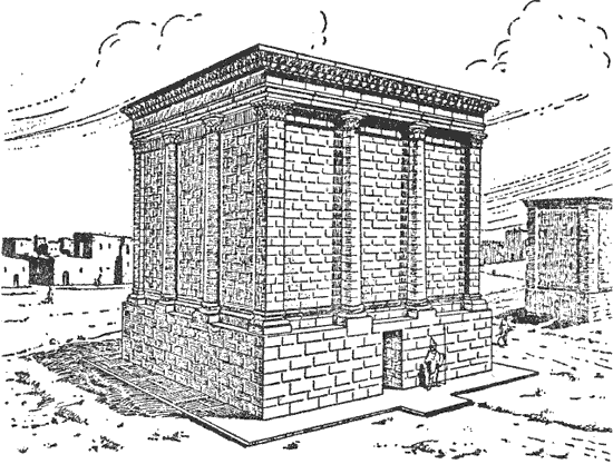 Каждая камера для гроба обычно закладывалась каменным бюстом, «представлявшим» умершего, либо несколько камер закрывались более крупной скульптурой. Эти рельефы большей частью исчезли со своих первоначальных мест, попав в личные и публичные собрания. Саркофаги пропали, а лежавшие в них мумии использовались арабами для магических целей, так что после них остались только немногочисленные лоскуты дорогих одеяний из Древнего Китая, Индии и других мест, в которые были облечены тела. Однако большая часть декора сохранилась: каменные и фресковые украшения и изображения оживляют погребальные камеры. Многие надписи говорят о том, что деловая сметка пальмирских торговцев побуждала их продавать локулы фамильной гробницы менее удачливым чужакам, давая пищу для морализаторства. Однако даже самые большие и роскошные из этих гробниц совершенно затмевает место последнего упокоения царя Антиоха I Коммагенского в Нимруд-Даге (фото 29). Громадный курган покрывает гробницу, его окружают широкие террасы. Теперь мы вошли в область архитектуры, к которой и обратимся далее.