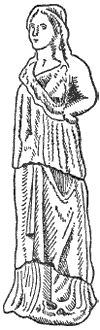 основатель династии) был коронован в Асааке – в области парфянской сатрапии Астауэне, а царская усыпальница располагалась в Нисе (или Партенисе). На этом месте (в Туркестане) археологические раскопки обнаружили крупные строения, надписи и разграбленную сокровищницу, однако царской усыпальницы пока найти не удалось (рис. 2, 3). Положение второго Аршака было не очень надежным, но два счастливых обстоятельства позволили его царству устоять. Во-первых, Селевк II был слишком занят ведением войны на западе, чтобы обратить внимание на это восстание; во-вторых, был заключен союз с Диодотом, сыном и наследником восставшего сатрапа Бактрии. Аршак – Тиридат успел навести порядок в своем государстве и создать армию до прихода карательной экспедиции Селевка II. Она состоялась только около 228 г. до н. э. Тиридат был вынужден отступить на северо-восток, в далекие степи Центральной Азии, где жили племена апасаков – водяных саков. Но Селевка срочно вызвали в Антиохию – улаживать новые внутренние конфликты, так что территория осталась за парфянскими правителями. Однако ни один из первых парфянских монархов не чеканил собственных монет, а пользовался деньгами Селевкидов. Это может служить свидетельством того, что они находились в таких отношениях с Селевкидами, которые представляли собой форму вассалитета.Рис. 3. Мраморная статуэтка из Нисы, видимо изображение богини. Масштаб примерно 1:2. II в. до н. э.