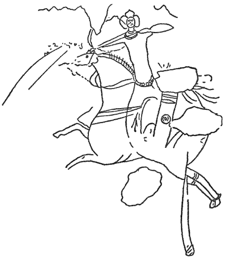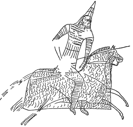 Рис. 6. Графическое изображение парфянских тяжелых (слева) и легких (справа) всадников из жилых домов Дура-Европос. Начало III в. н. э.