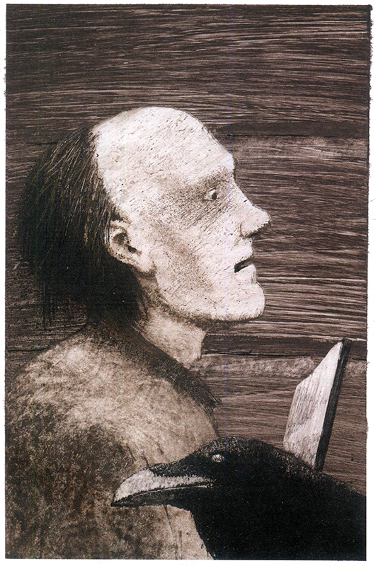 Ворон, однако, по-прежнему отказывался говорить и смотрел то на хозяина, то на его гостя черным и блестящим, как ягода, глазом. А другой глаз у ворона был больной, с бельмом.
