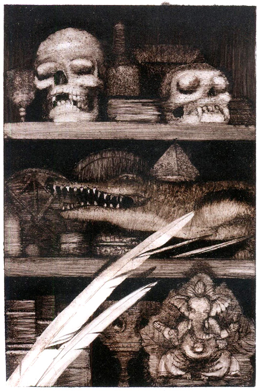 По стенам кабинета стояли книжные шкафы, а на полках среди книг были разложены разные диковины: два черепа — человека и обезьяны, чучело небольшого крокодила, хрустальный шар, набор резных шкатулок, серебряная курильница и другая всячина. Посредине кабинета на большом хорасанском ковре стоял письменный стол, заставленный множеством колбочек и склянок, аптекарскими