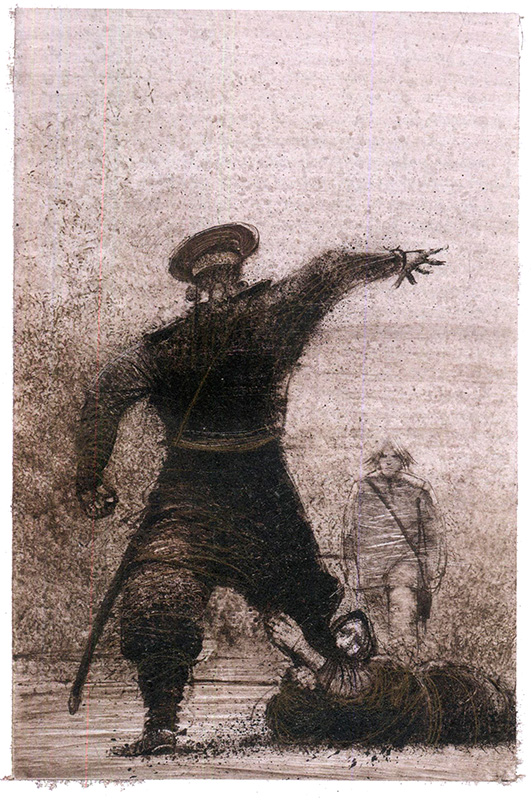 Повалилась мать перед урядником в пыли, за яловые сапоги схватила и не пускает.