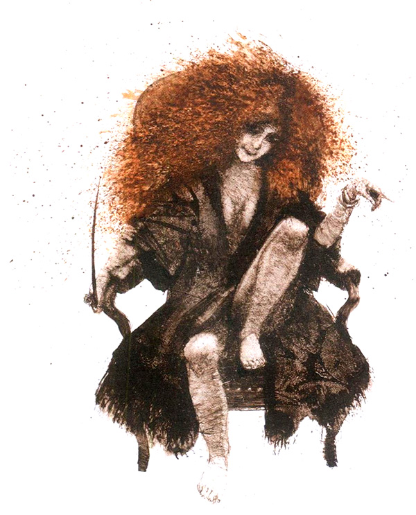 Схватив с туалетного столика подсвечник, Нил в три широких шага обошел кресло и осветил сидящую в кресле женщину. Вместо одутловатой и морщинистой старухи, которую он ожидал увидеть, перед ним сидела молодая рыжеволосая девушка. Из одежды на ней был лишь темно-зеленый бархатный халат графини. Девушка сидела в кресле, поджав под себя босые ноги. В правой руке полуодетая красавица держала тонкую трубочку, из которой в сумрак осеннего вечера ночи подымался сизый дым.