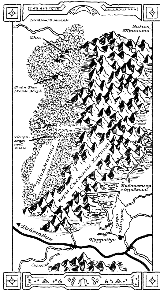 Колдун не тешил себя отеческой гордостью за деяния сына. У него были собственные планы на этот край: намерения покорить его, внушенные ему аватарой богини зла Талоны. Еще прошлой весной этот проект казался легкоосуществимым – конечно, с восемью тысячами воинов Замка Тринити, не считая колдунов и жрецов Талоны. Но затем Кэддерли неожиданно остановил Барджина, могущественного жреца, проникшего в самое сердце края – в Библиотеку Назиданий. Потом Кэддерли привел эльфов леса Шилмиста, что на западе, к ошеломляющей победе над войском гоблинов и великанов, загнав значительное число союзников Замка Тринити в их горные норы.