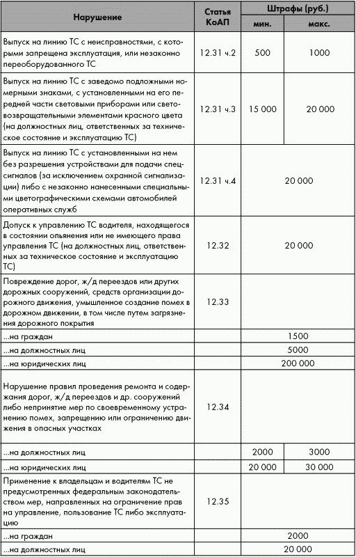 Ответственность за нарушения ПДД по состоянию на 1 января 2010 года