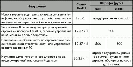 Пользование водителем во время движения транспортного средства телефоном, не оборудованным техническим устройством, позволяющим вести переговоры без использования рук, – влечет предупреждение или наложение административного штрафа в размере 300 рублей.