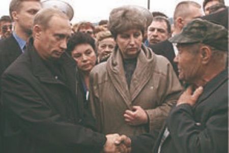 В. Путин на встрече с родственниками погибших подводников 22 августа 2000 г.