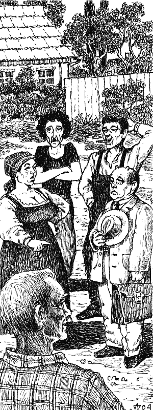 Тем временем открылась дверь подвала, наполовину утопленная в асфальте, и оттуда, как из подземного узилища, появились пленник и конвоир. Пленник, в котором с полувзгляда угадывался матерый сантехник, шел впереди, невнятно бормоча про плановую проверку коммуникаций и «этого куркуля Данилыча». Конвоир, очень довольный, шагал следом, воинственно выставив перед собой небольшую бороду.