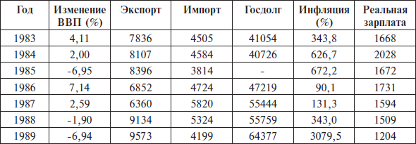 Таблица 3.3 Динамика макроэкономических показателей в 1983–1989 гг. (млн дол.)