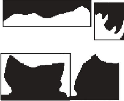 сказать. Немного похоже на полуостров, где расположена Испания. Но сказать что-то определенное мы пока не можем, и максимум, что мы можем сделать, это посмотреть на рисунок и отложить его пока в сторонку.Нам дают другой кусок. Форма странновата. Может, это книга с открытыми страницами, которая лежит на столе? Возможно.