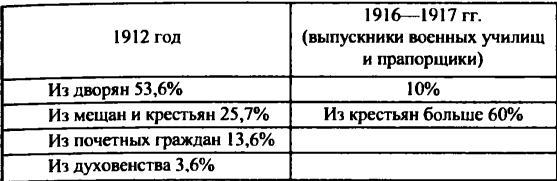Вот таблица, составленная на основе данных С.В.Волкова о качественном составе офицеров: