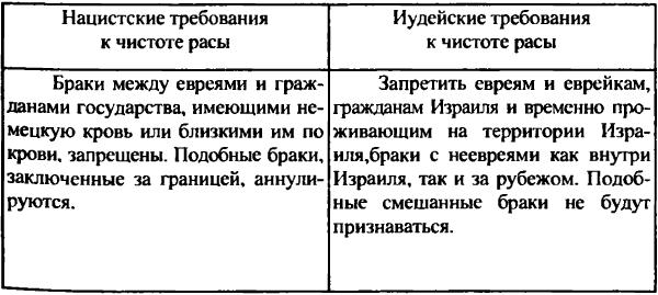 В фильме в виде таблицы приводятся нацистские и иудейские требования по поддержанию чистоты расы. Вот эта таблица: