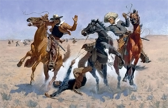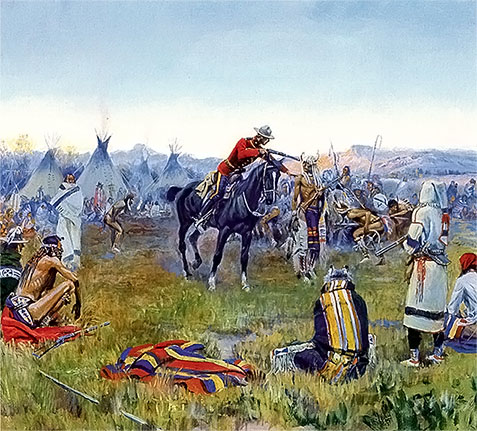 На канадских равнинах Королевской конной полиции удавалось решать проблемы с черноногими без серьезных стычек. Худ.