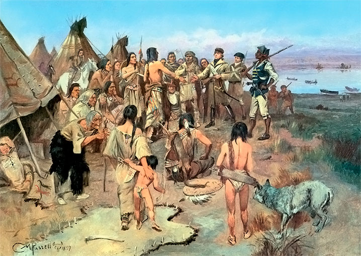 Индейцы встречают экспедицию Льюиса и Кларка. Худ. Ч. Ремингтон
