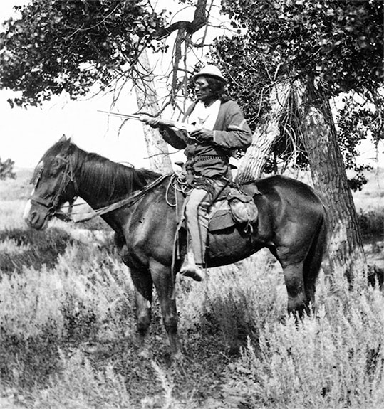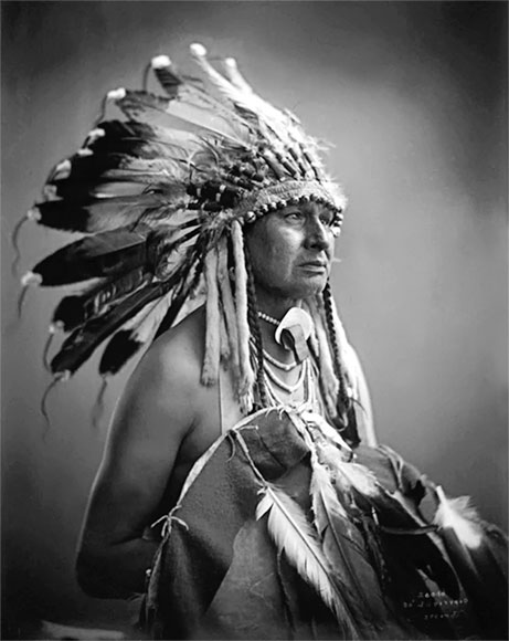 Сиу (хункпапа). Знаменитый воин и военный предводитель, член общества Молчаливых Едоков хункпапа. В 1868 г. был «Носителем Трубки» отряда, в котором под его началом участвовал сам Сидящий Бык. В июне 1876 г. сражался в битве на Литтл-Бигхорн, где в бою с солдатами Рино «убил двух скаутов — сиу и кроу»: предположительно речь идет о Кровавом Ноже, чьим отцом был сиу, а матерью арикара, и скауте кроу Белом Лебеде, тяжело раненном в том бою. Был еще жив в 1930 г.