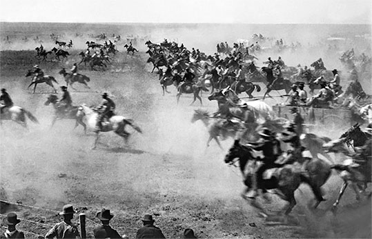 в период 1811–1840 гг. Не все участки были проходимы для фургонов, но постепенно дорога была улучшена, и караваны беспрепятственно могли передвигаться по ней. Первый караван до Орегона проследовал в 1843 г., а уже всего спустя 3 года до долины Вилламет. Основными пунктами, откуда начинался путь, были порты на р. Миссури: Канзас-Сити, Индепенденс и Сент-Джозеф. Далее путь пролегал через Великие Равнины, различные его ответвления сливались воедино в низовьях р. Платт около форта Фил-Кирни, затем вел через Скалистые горы к Тихоокеанскому побережью. Путешествие занимало несколько месяцев. В 1869 г., с завершением строительства трансконтинентальной железной дороги, Орегонская тропа потеряла свою значимость, хотя некоторые переселенцы еще следовали по этому пути на фургонах до 1890-х гг. Путешествие по железной дороге занимало неделю и стоило всего 65 долл.Оседжей, резервация Osage Indian Reservation
