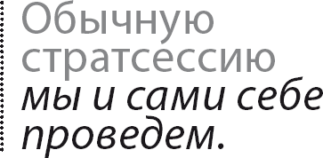 – Обычную стратсессию мы и сами себе проведем, у Андрея с Анной MBA, – сообщил Иван.