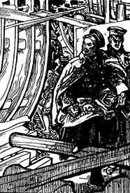 Под крышей гулко отдавался перебой топоров, и такой же стук доносился из других отделений доков, где в таких же гнездах строились суда.