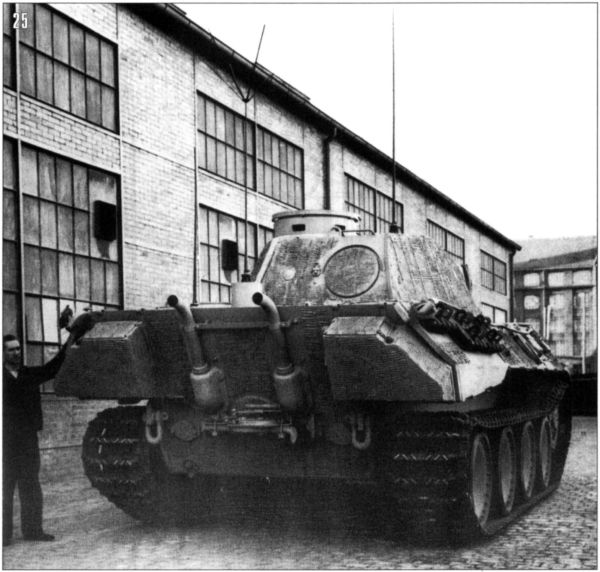 24. Тот же командирский танк Pz. Bet. Panther, что и на фото 22, вид спереди справа. На машине отсутствуют крепления для бортовых экранов и укладки ЗИП.