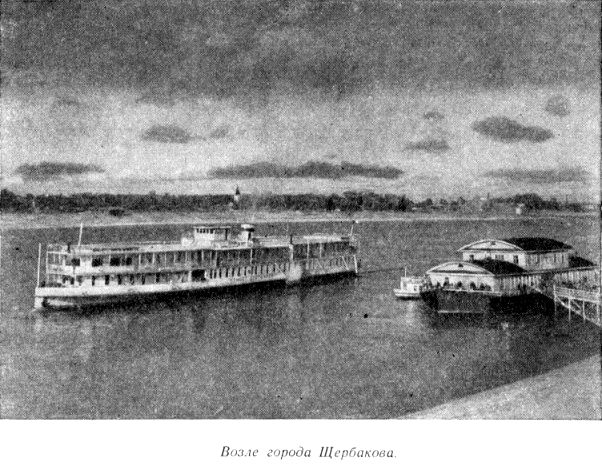 Теплоход подошел к пристани города Щербакова. В этом городе провел свое детство и юность, здесь организовал первую комсомольскую ячейку выдающийся деятель Коммунистической партии Александр Сергеевич Щербаков. В годы войны он возглавлял политическую работу в армии, руководил московской партийной организацией.