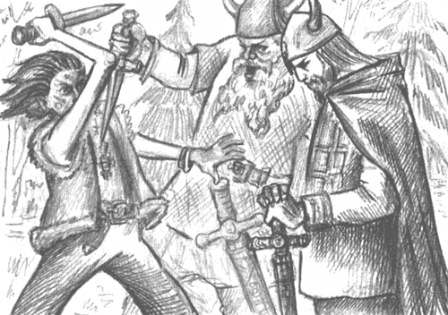 — Хорошо, поезжай с нами, и если заслужишь и останешься жив, по возвращении кузнец Грим прежде всего разрубит кольцо на твоей тощей шее.