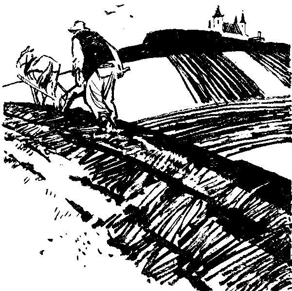 Идет по дороге крестьянка с тяжелым мешком, с нею ребенок. Мимо проезжает роскошный тарантас, запряженный парой лошадей. В тарантасе — толстенные, важные, надутые мужчина и женщина. Такие мне и моим ровесникам знакомы только по старым карикатурам, высмеивающим толстопузых буржуев.