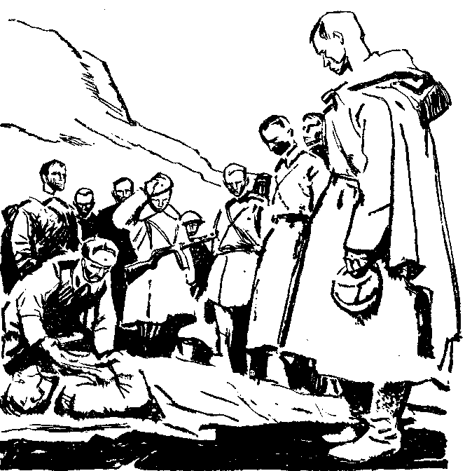 Над могилой, выдолбленной в мерзлой, каменистой земле, солдаты и офицеры произносят прощальные слова.