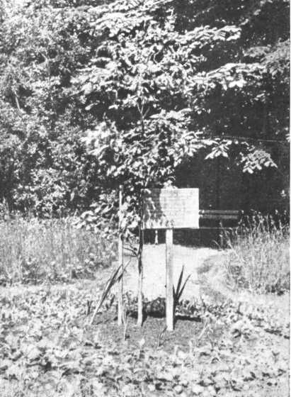 Дуб, посаженный в саду Дома-музея в Клину дирижером Л. Стоковским; Надпись на дощечке: «Этот дуб посажен как любовное подношение от любителей музыки всего мира. Леопольд Стоковский. 2/VI—1958 г.».
