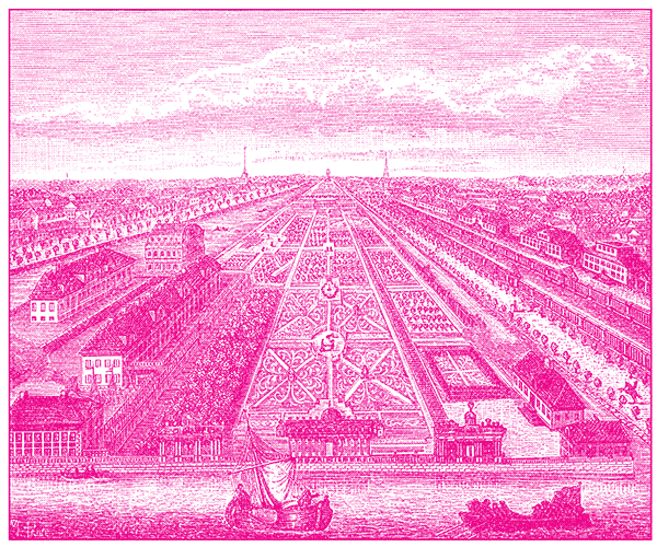 Летний сад и дворец в Петровское время. С гравюры 1716 г.
