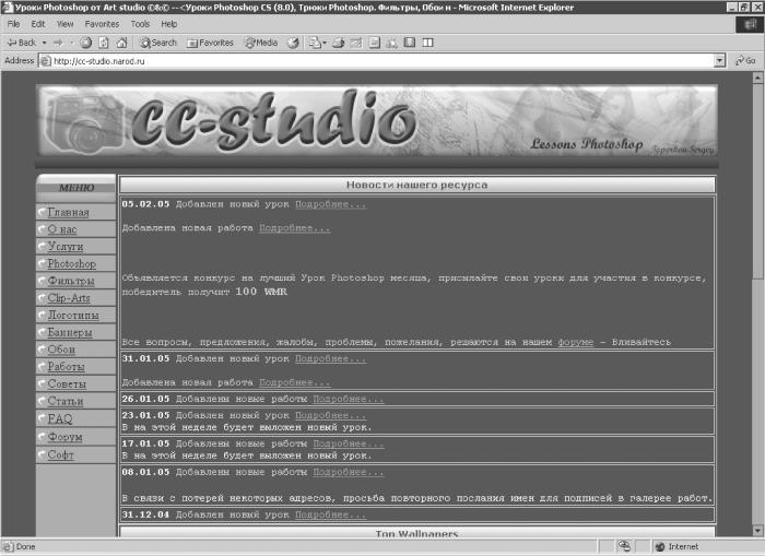 Рис. 11.10. Главная страница сайта «Уроки Photoshop от Art studio».