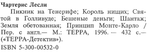 Пикник на Тенерифе [Пикник на Тенерифе. Король нищих. Святой в Голливуде. Бешеные деньги. Шантаж. Земля обетованная. Принцип Монте-Карло]