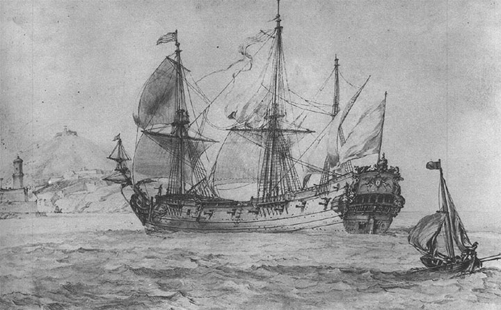 Легкий фрегат XVII века. Рисунок Пьера Пюже
