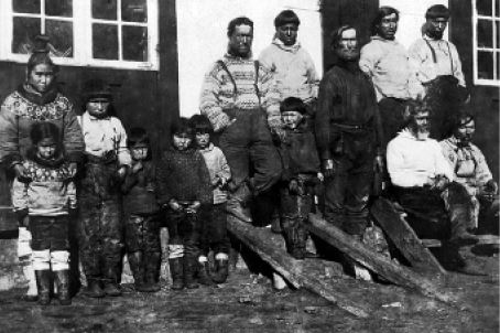 берегу острова Нортумберленд. Немногие из песцовых капканов были снабжены приманкою, и ни одна из заячьих ловушек не имела петель. Первое указание на жилище эскимосов на острове Нортумберленд было в бухте, находящейся на западе от большого ледника…Пустое поселение состояло из двух каменных жилищ, двух помещений для собак и восьми складов птиц и ворвани. Все входы как в жилища, так и в собачьи помещения открывались прямо на юг, кровли сняты или упали внутрь. Общий способ постройки был такой же, как и у других, которые мы раньше исследовали; большие кости китов, моржей и нарвалов, черепа, лопатки и позвонки образовали большую часть их стен» (Пири, 1906, с. 139–142). Оказалось, что на острове находится небольшое поселение коренных обитателей Гренландии, и, таким образом, поручение руководителя экспедиции Кук успешно выполнил, включая переселение семейства Иквы с супругой и двумя детьми к экспедиционной базе.