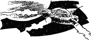 Сейчас-то я могу писать об этом в веселом тоне, а тогда висел головой в кабине и ногами среди звезд, и от ощущения свободного падения бунтовал желудок. Поле искусственного тяготения обрывалось сразу за дверью каюты. Привязавшись канатом, я выбрался подальше наружу и увидел, что корма „Галактики“ пропала. Моя каюта располагалась примерно в середине, и от нее к носу все сохранилось: командная рубка, лаборатория, обсерватория и так далее. Если бы неизвестная сила прошла на несколько сантиметров ближе к носу, я бы не проснулся.