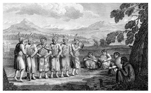 Ситкинские колоши никогда не питались человеческим мясом, не так, как нуткинские их единоплеменники, подозреваемые в людоедстве. Но мы слышали о народе, живущем в горах, к северу, отличном от них как языком, так и образом жизни, у которого будто бы существует этот возмутительный обычай. Колоши называют этот народ конлан; он прежде употреблял луки и стрелы с каменными остриями, но теперь получает от соседних колошей ружья и порох в обмен за лисьи и собольи шкуры и самородную медь. Говорят, что конланы через горы имеют сношение с обитателями реки Медной и Чугацкой губы.