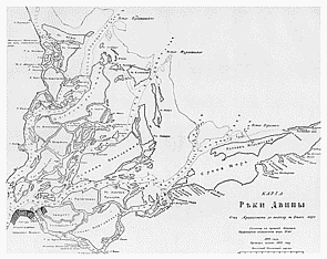 Получив от Государственного Адмиралтейского Департамента потребные мне карты, книги, хронометры и некоторые другие инструменты, я отправился из Санкт-Петербурга по последнему санному пути и в первых числах апреля прибыл в Архангельск.